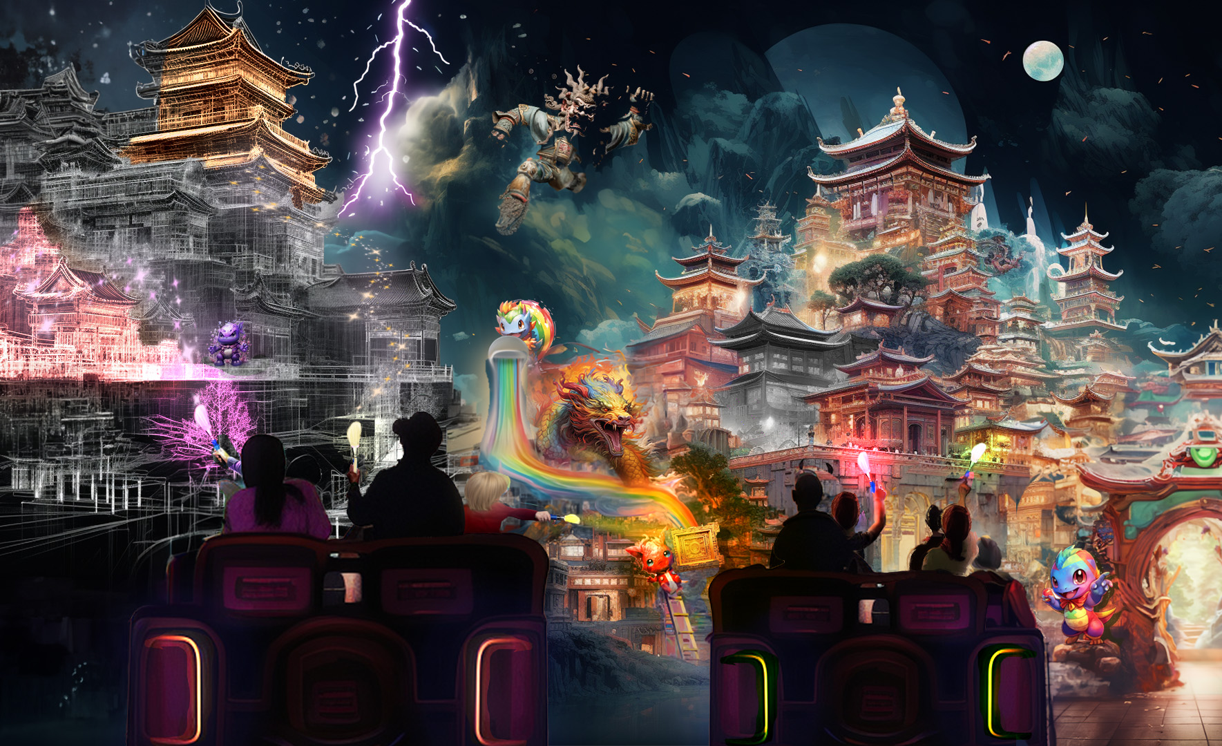 Based on a Chinese story in which a man uses a magical paint brush to create scenarios to help people, riders use their own magic brushes to colorize and create scenes and conjure magical objects while Pokémon-like characters guide them on their quests.